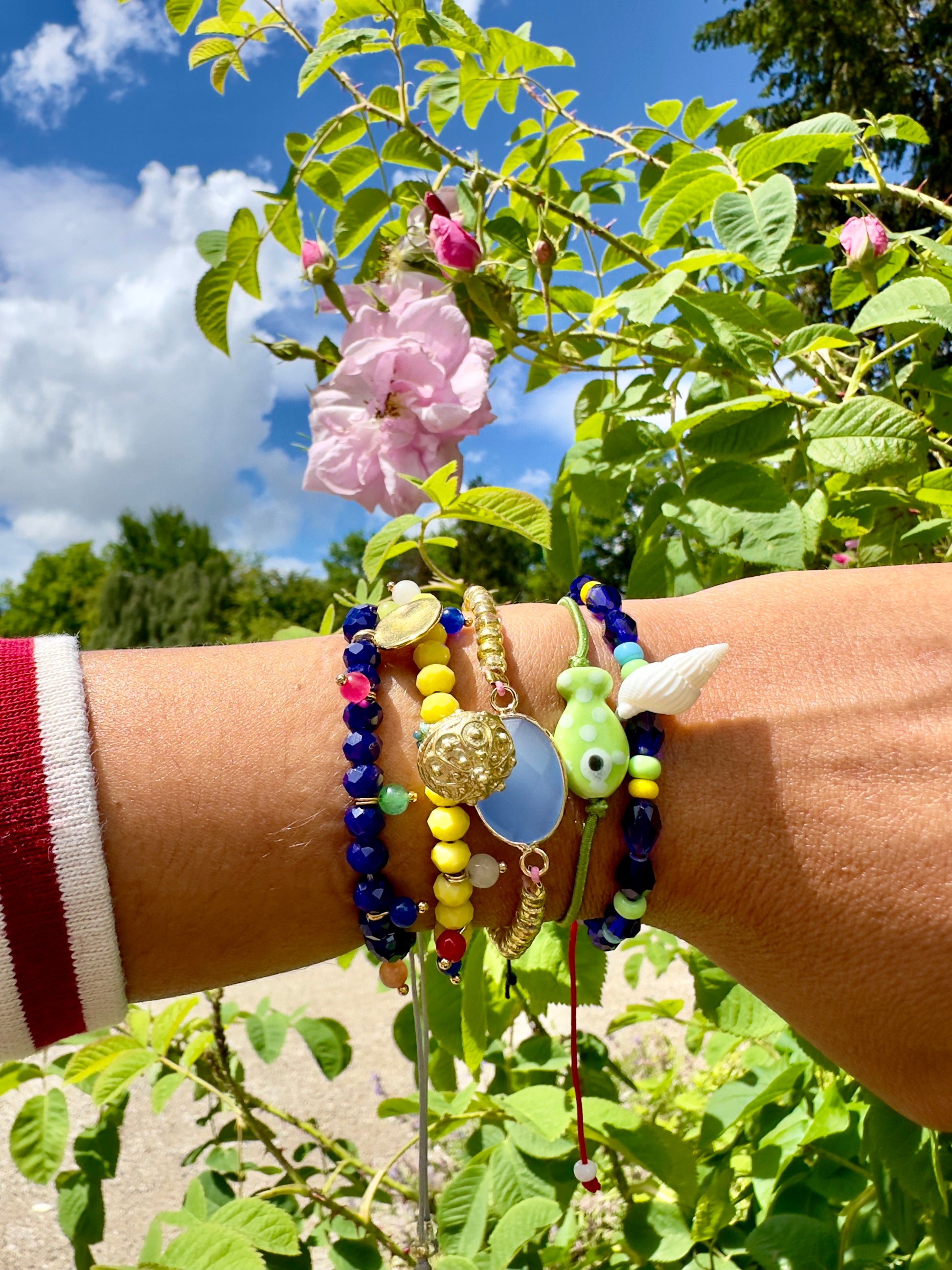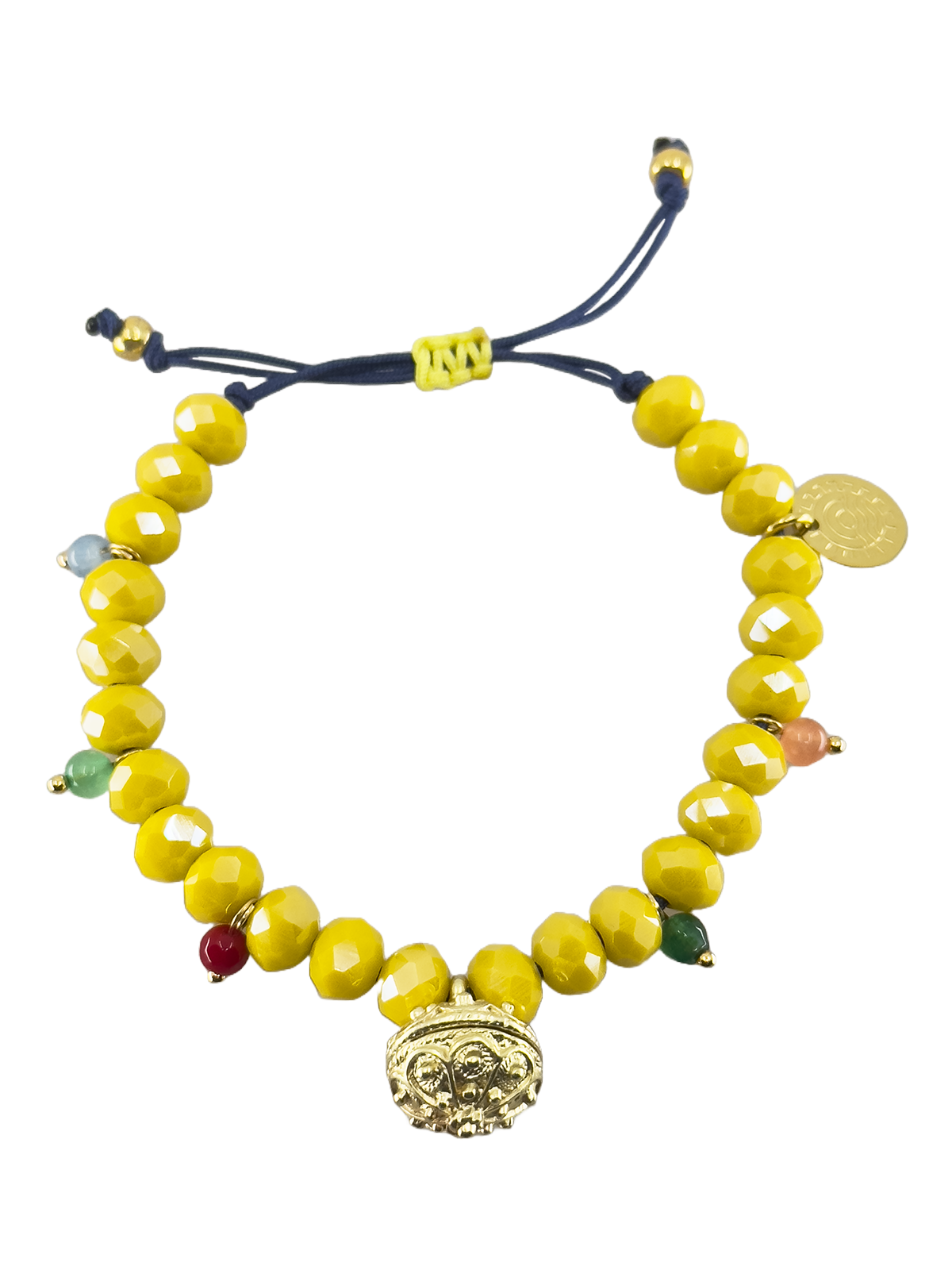 Das "Sunny Valldemossa" Armband erinnert an das malerische Valdemossa mit lebendigen Farben und einem glänzenden goldenen Button. Das perfekte Accessoire für den Sommer, das dich immer an sonnige Tage erinnern wird. Helle gelbe Farbtöne lassen dich in positiver Stimmung erstrahlen.