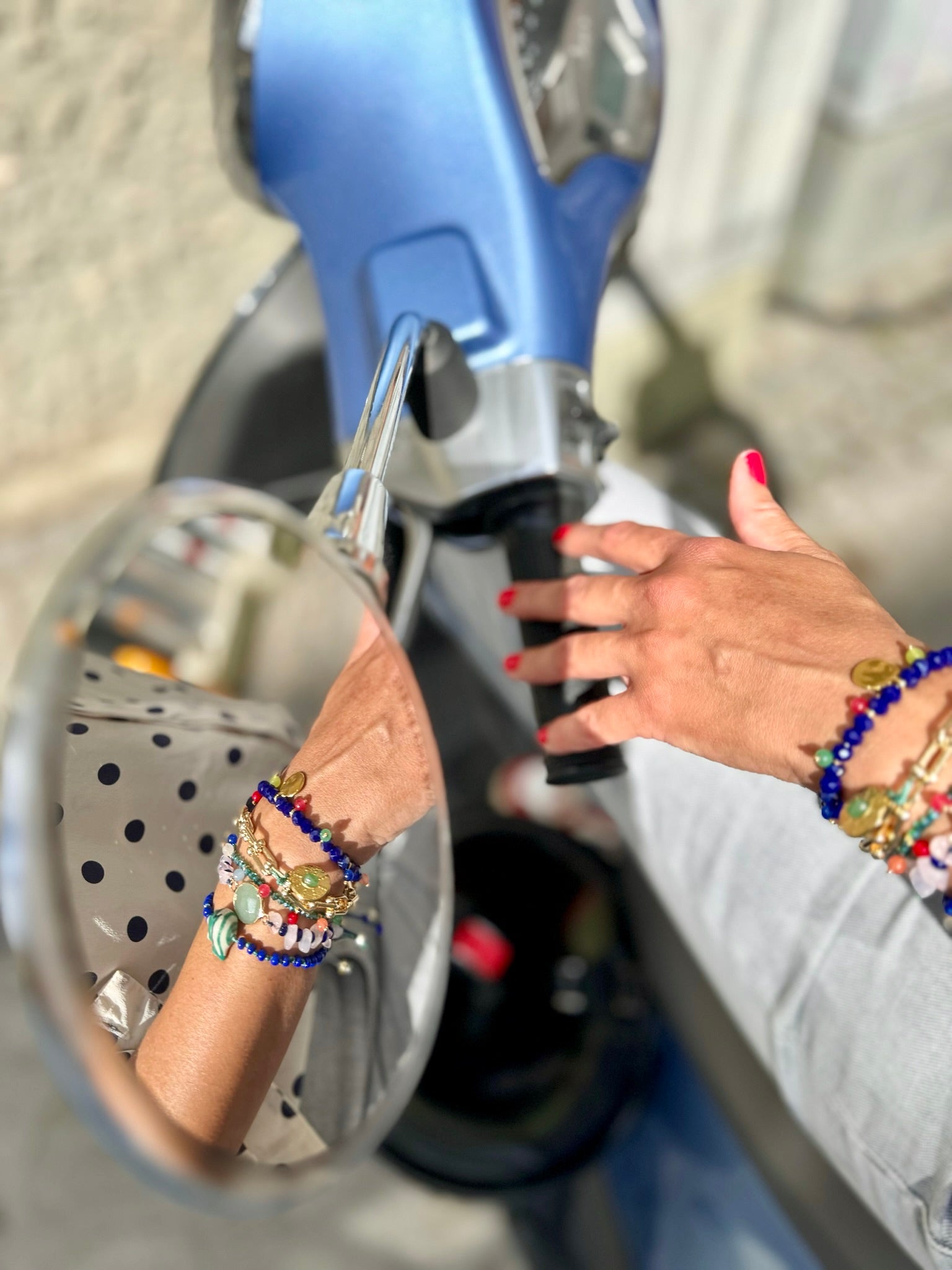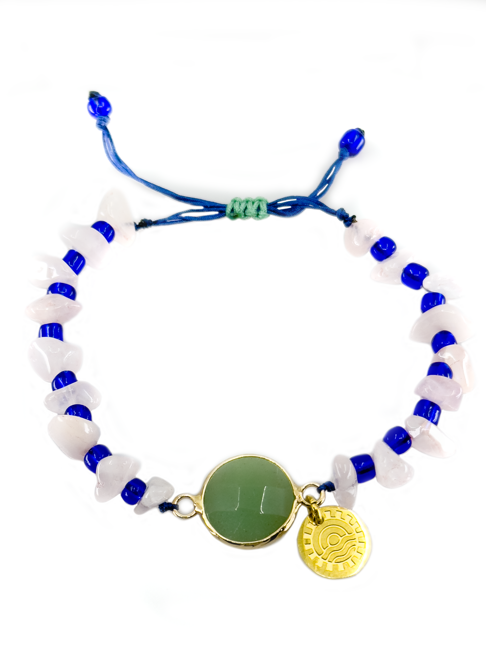Das "Olive Tree" Armband verfügt über eine wunderschöne Kombination aus blau sowie leicht-rosa Perlen und einem oliv-grünen Stein. Die perfekte Ergänzung für jedes sommerliche Outfit.