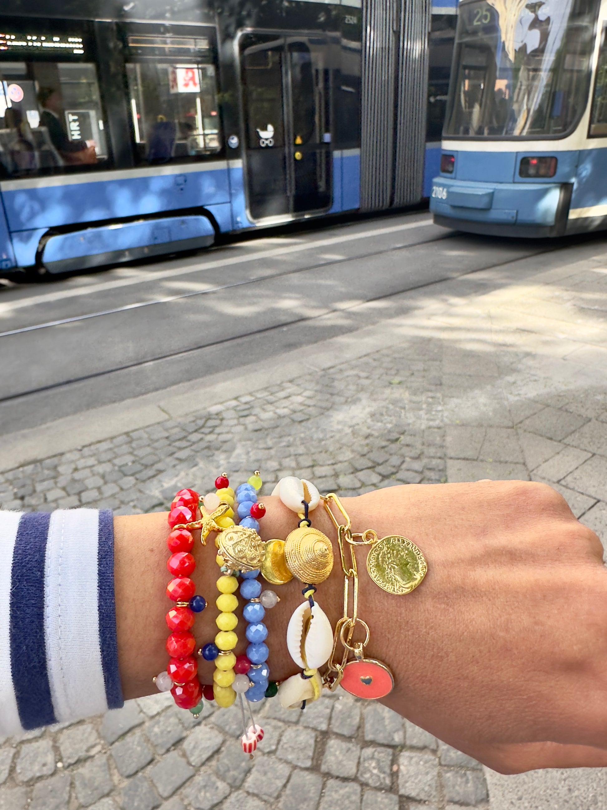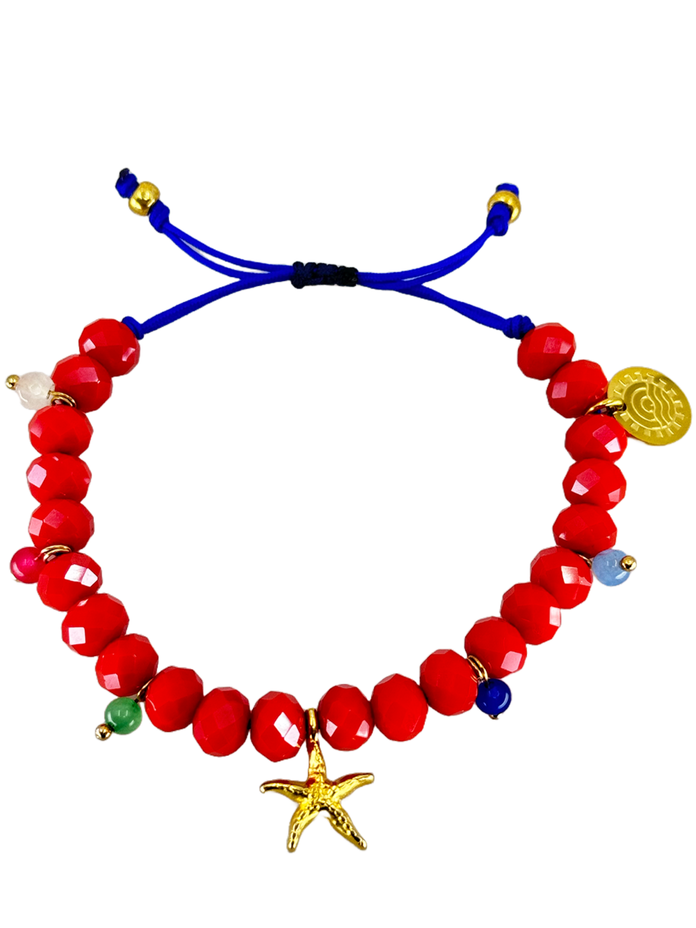 Das Armband Hot Chilly bringt Farbe! Die roten und bunten Perlen werden durch einen goldenen Stern ergänzt und machen das Armband zu einem echten Hingucker.