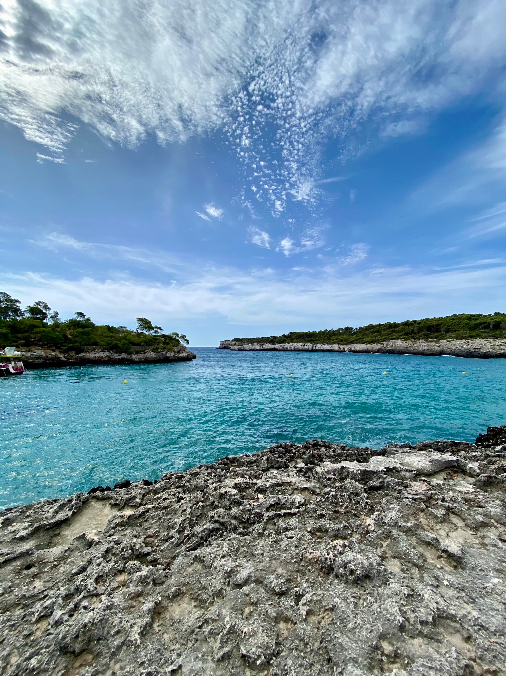 Das Coca de Patata Armband kombiniert weiße Muscheln mit einem türkisen Stein und bringt so einen Hauch von Meer in dein Outfit.