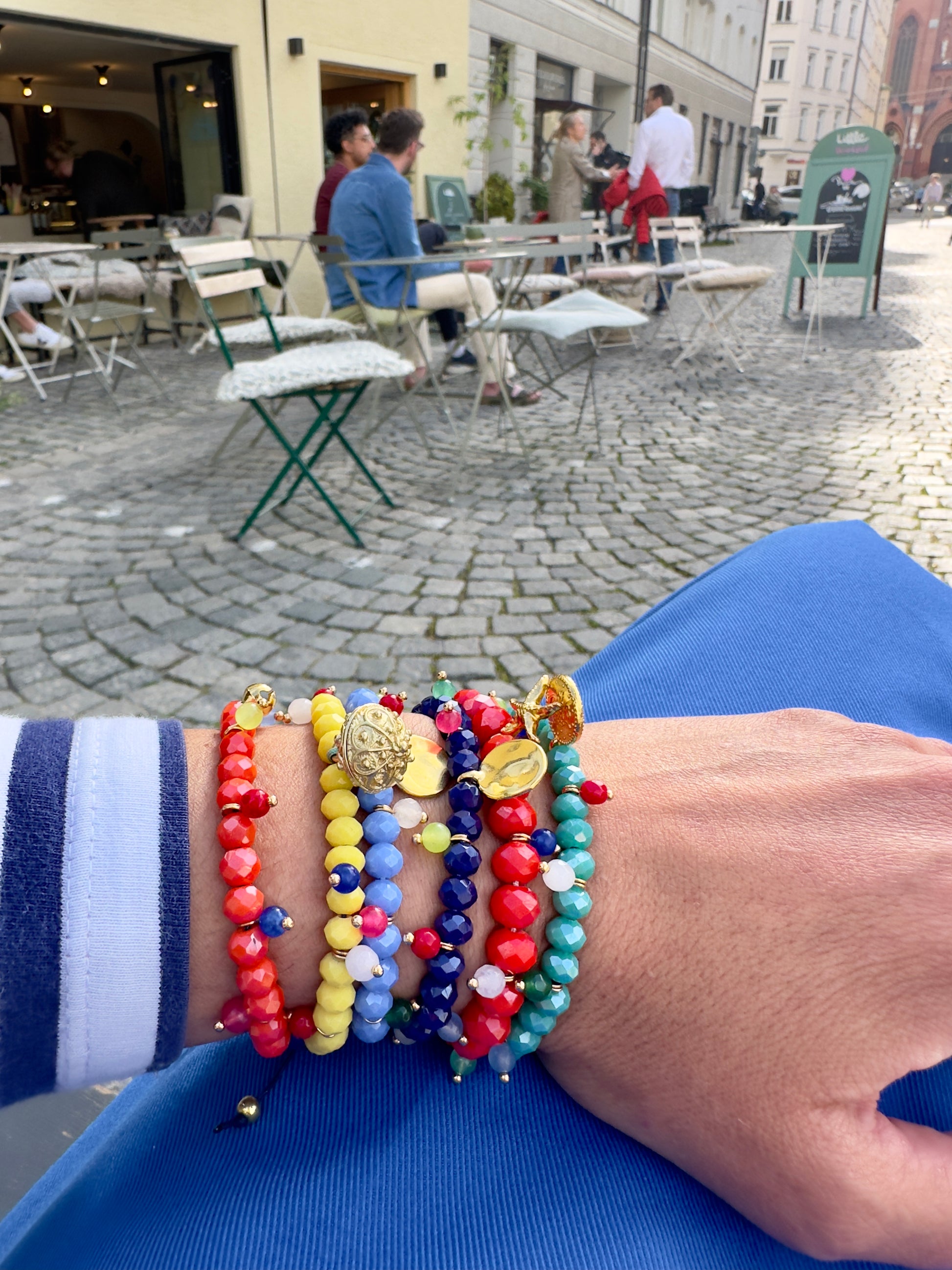 Hol dir mit Espresso den perfekten Begleiter für ein Café Date in Split oder Mallorca! Diese einzigartige Armband verfügt über grüne leuchtende Perlen und ein vergoldetes Plättchen. Sei immer stilsicher und pünktlich - und verleihe deinem Look eine Portion Extravaganz!