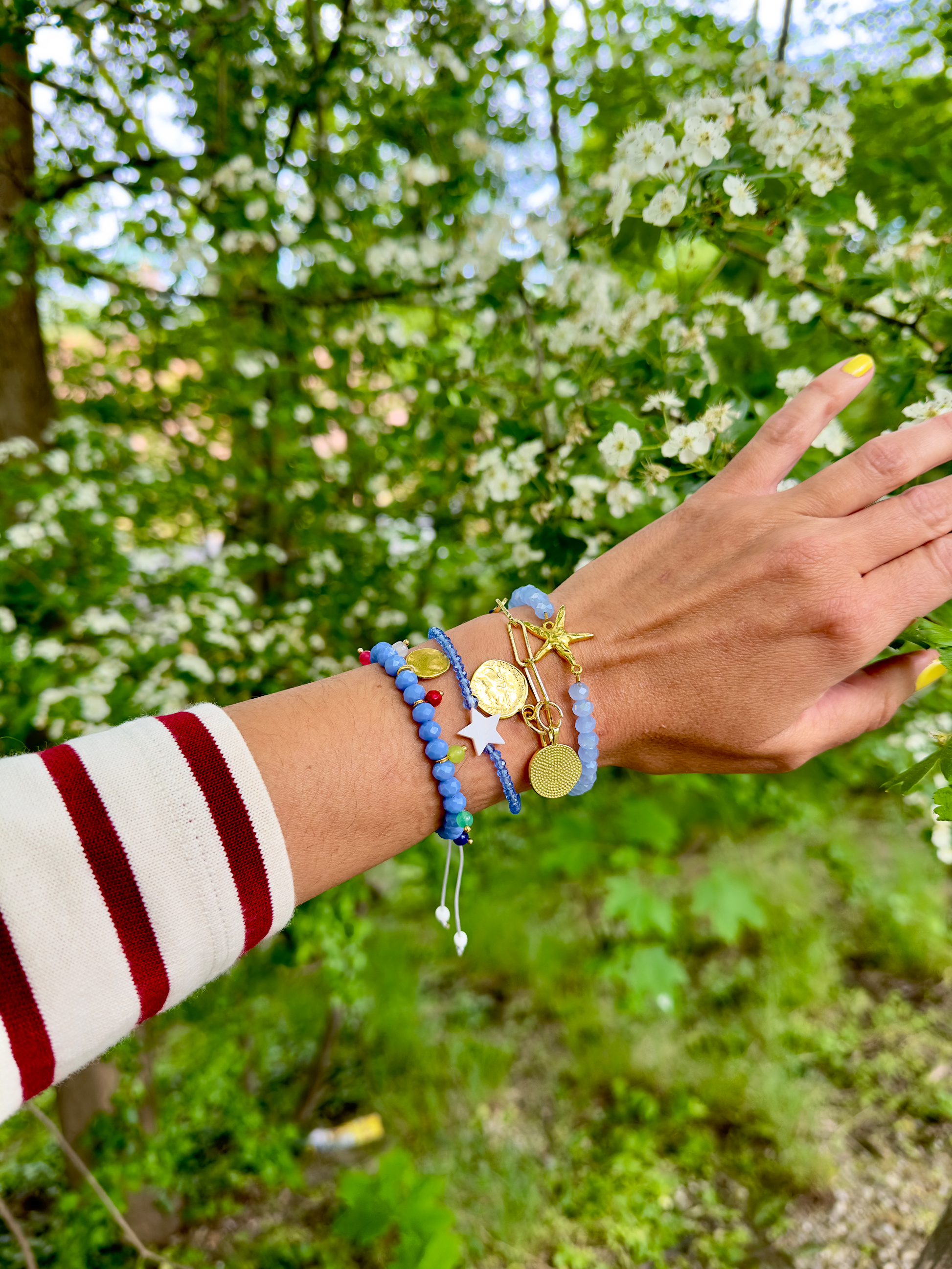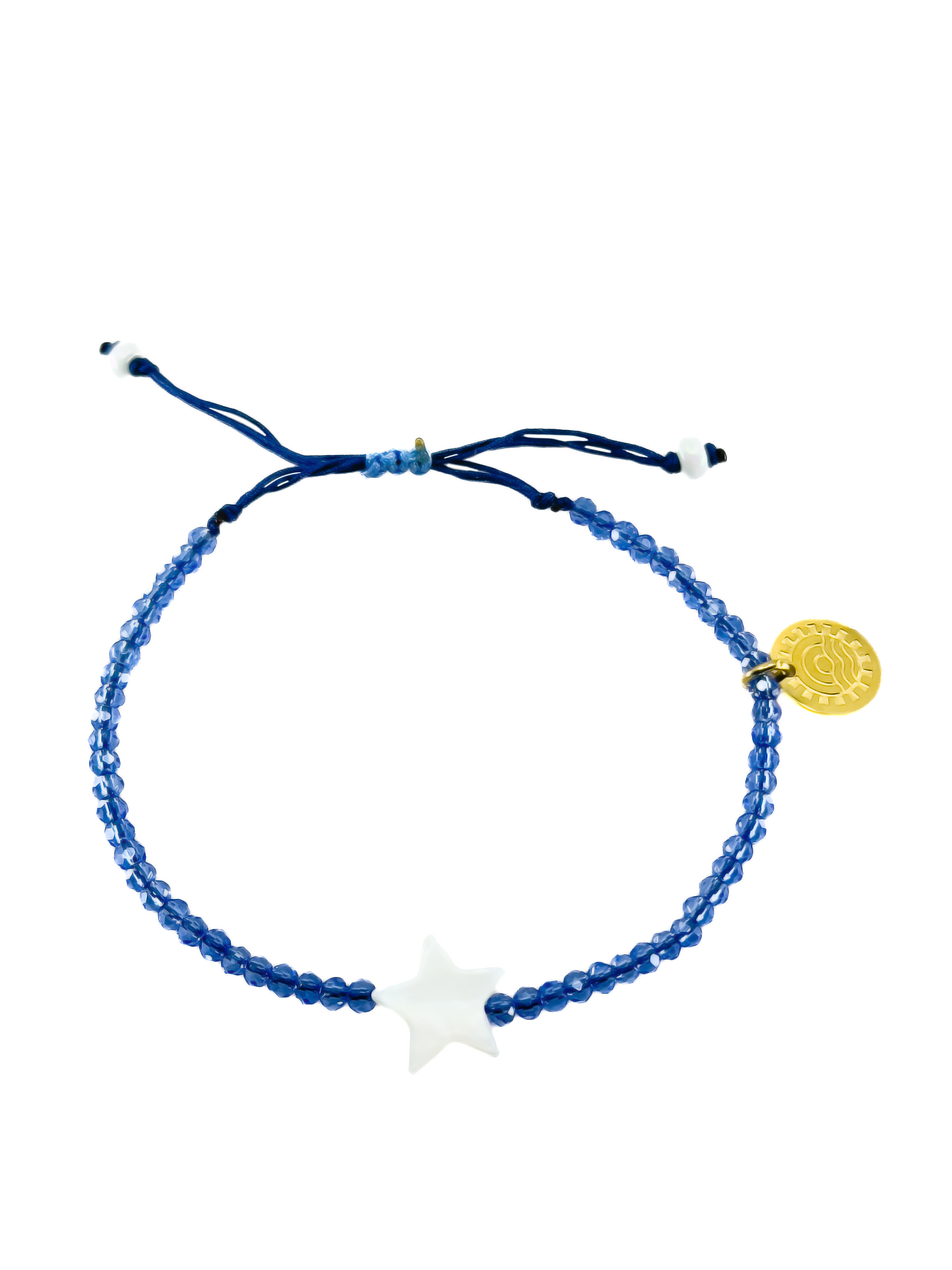 Dieses stylische Armband mit einem weißen Stern und blauen Perlen ist perfekt für alle, die es schlicht und dennoch originell mögen.
