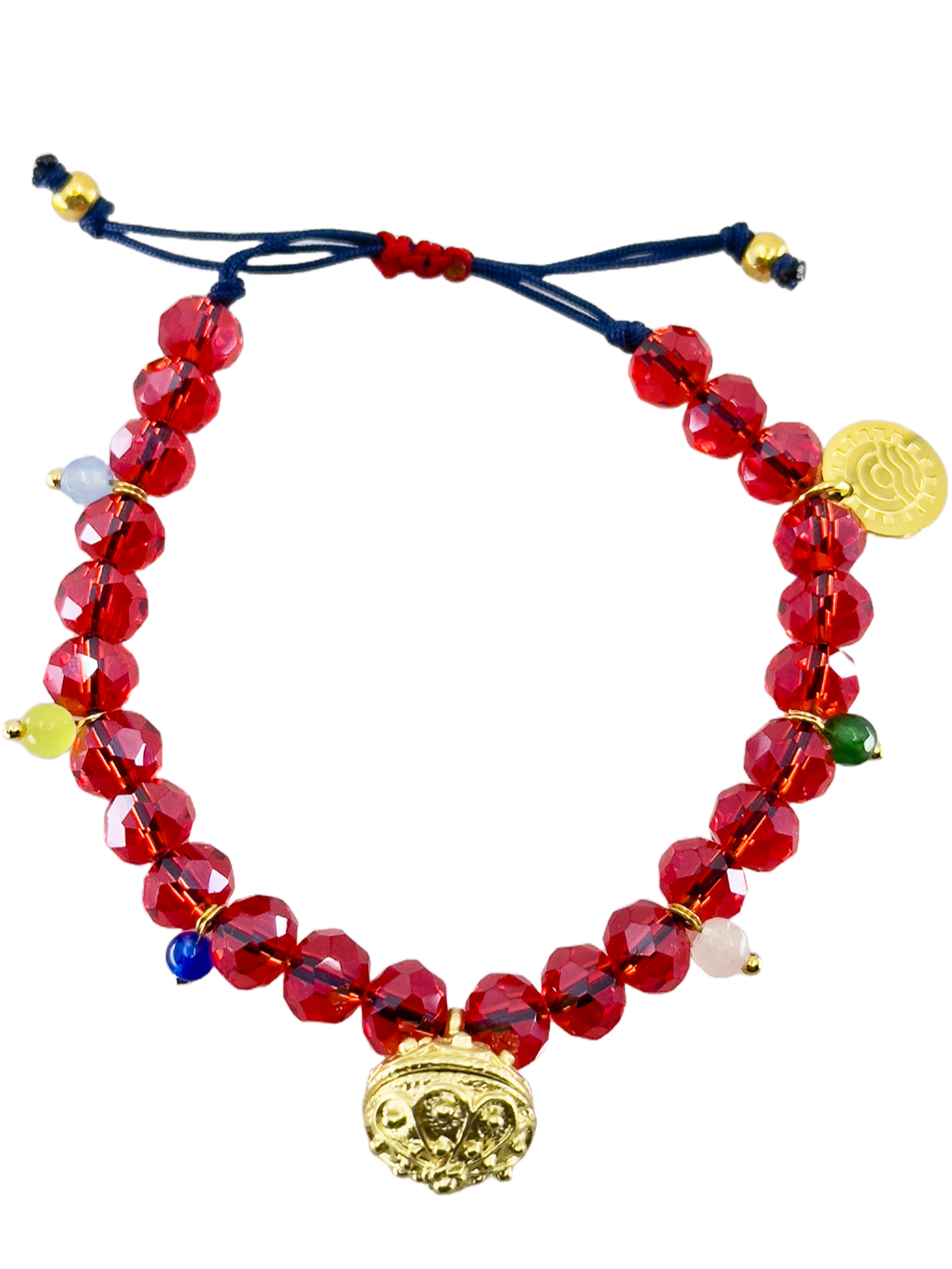 Halte mit dem Armband "Scene Stealer" einen Hauch von mediterranem Flair am Handgelenk fest! Die transparent-roten und bunten Glasperlen sowie der vergoldete, typische mediterrane Anhänger verleihen jedem Outfit einen tollen Look.