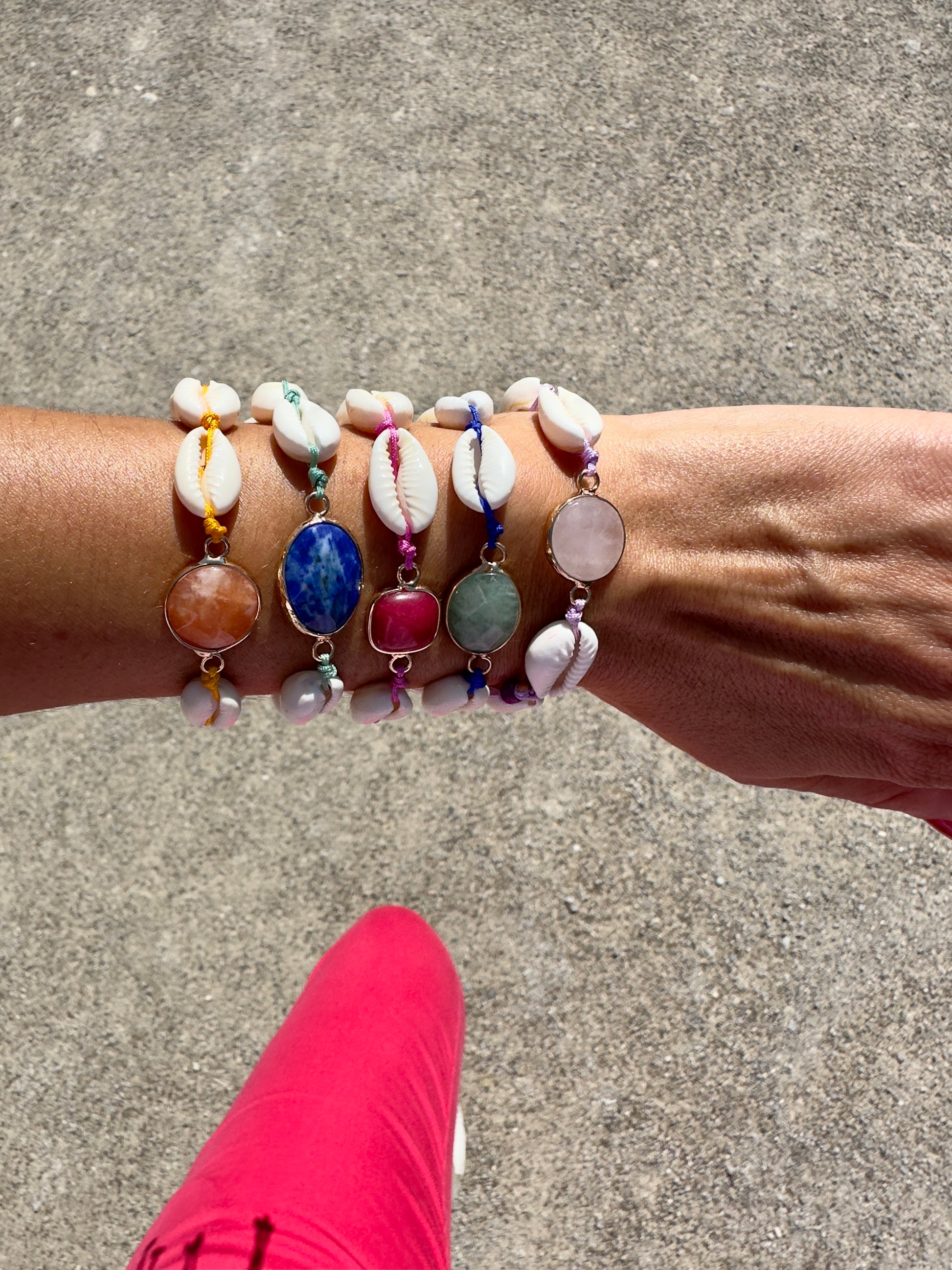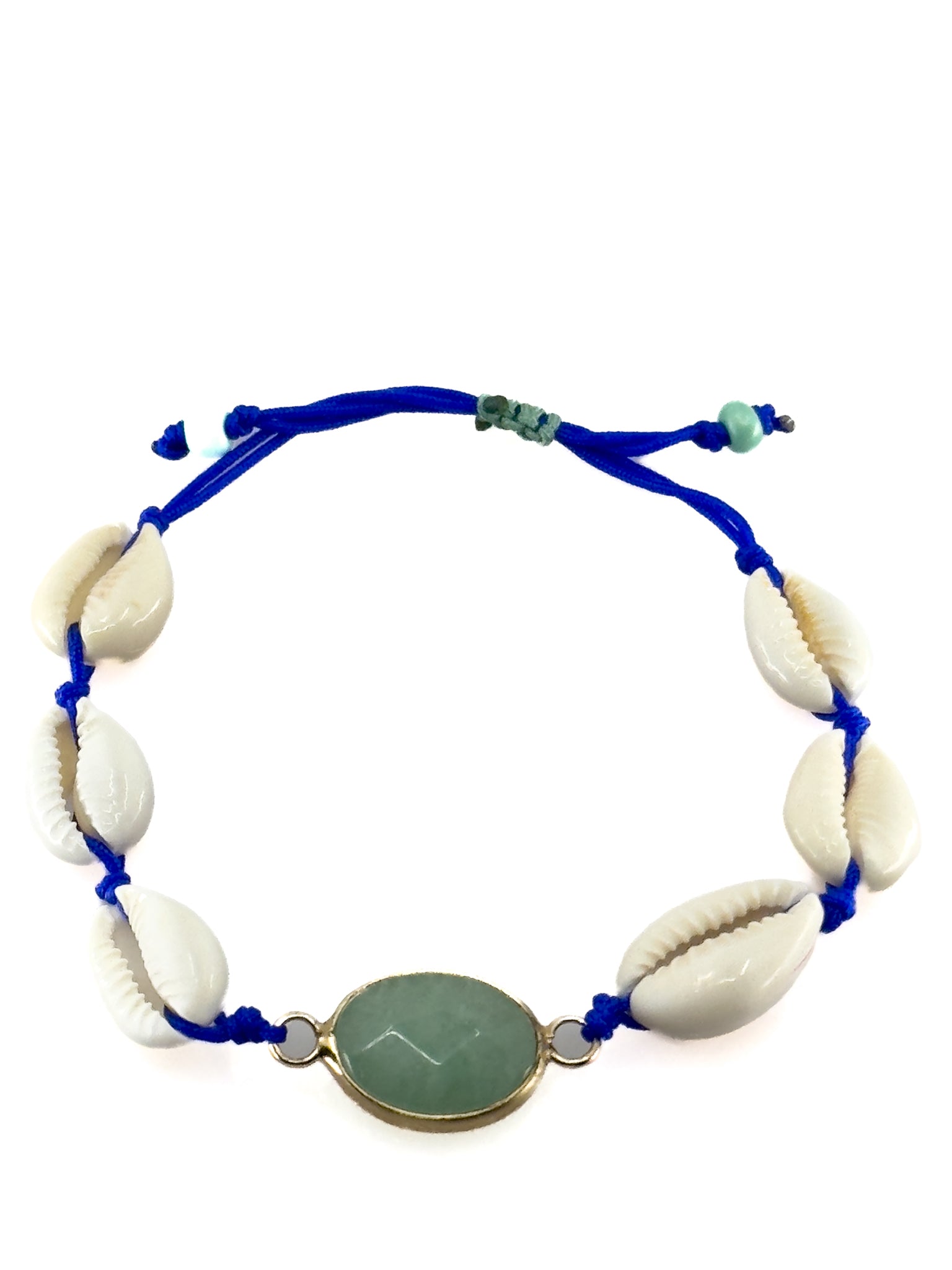 Das "Under the olive tree" Armband verfügt über eine wunderschöne Kombination aus weißen Muscheln und einem grünen Stein-Anhänger. Die perfekte Ergänzung für jedes sommerliche Outfit.