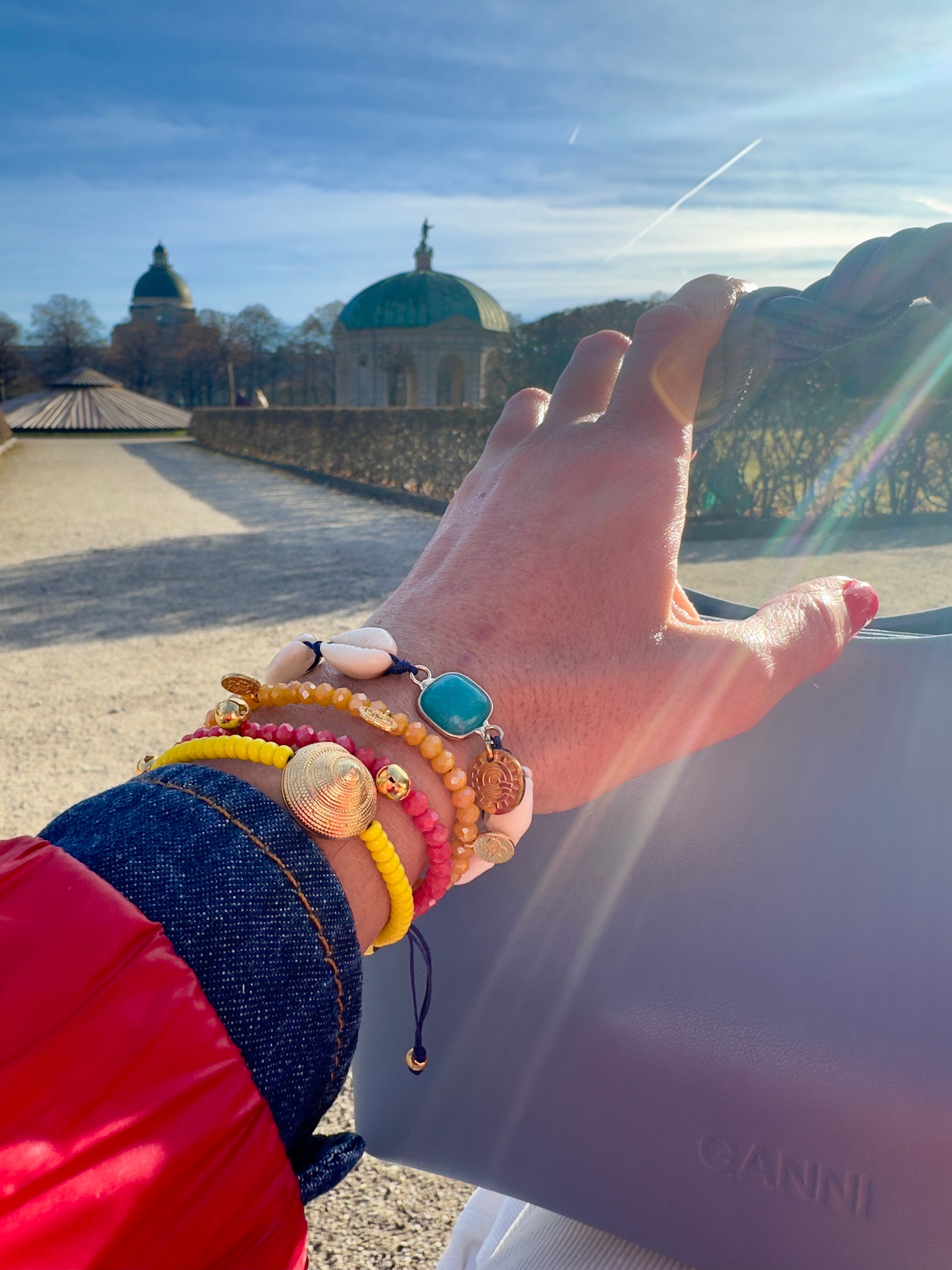 Das "So adriatic" Armband verfügt über eine wunderschöne Kombination aus weißen Muscheln und einem blauen Stein-Anhänger. Die perfekte Ergänzung für jedes sommerliche Outfit.