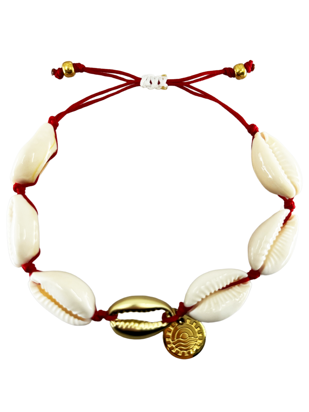 Das Tramonto Armband verfügt über eine wunderschöne Kombination aus weißen Muscheln und einer vergoldeten Muschel. Die perfekte Ergänzung für jedes sommerliche Outfit.