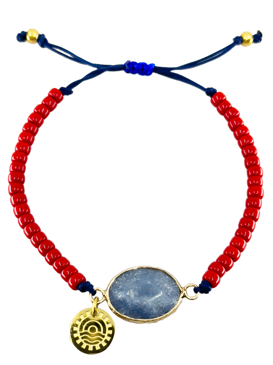 Das "Valldemossa Secrets" Armband verfügt über eine wunderschöne Kombination aus roten Perlen und einem blauen Stein. Die perfekte Ergänzung für jedes sommerliche Outfit.